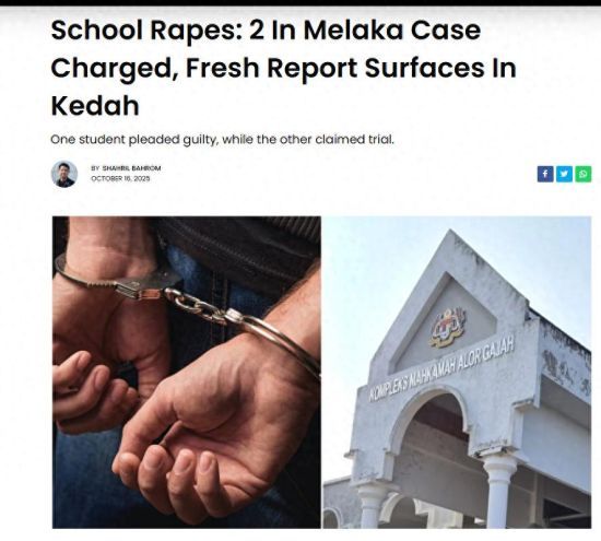 “马六甲校园轮奸案”,涉案男生仍能参加文凭考试!马来西亚一所中学的教室,成了15岁少女遭遇噩梦的犯罪现场。10月初,一段拍摄于马六甲州亚罗牙也县一所中学教室的轮奸视频,在马来西亚网络平台上迅速扩散。据警方初步调查,四名17岁男生涉嫌对同校一名15岁女生实施性侵