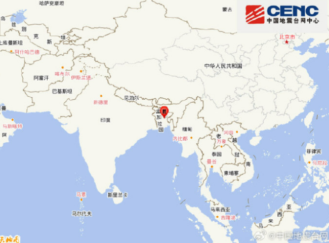 孟加拉国发生5.1级地震 震源深度10千米中国地震台网正式测定:11月21日12时38分在孟加拉国(北纬23.75度,东经90.65度)发生5.1级地震,震源深度10千米