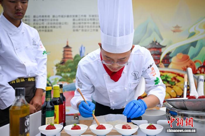 四川眉山厨艺对决点燃秋日“食”光9月27日,一场精彩的厨艺技能大赛在四川眉山市东坡区太和公园星光湾举行。专业与业余选手同台竞技,为现场民众及游客呈现了一场兼具视觉与味觉的美食品鉴盛宴。图为参赛厨师正在紧张制作菜品“荔枝虾球”。中新社记