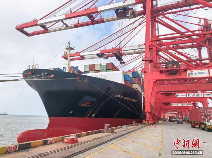 首批来自秘鲁钱凯港的进博会展品抵达上海洋山深水港中新网上海10月15日电 (记者 陈静)第八届中国国际进口博览会(简称:进博会)将至。15日,在上海洋山深水港,首批来自秘鲁钱凯港的进博会展品从“中远鲁珀特王子港”轮顺利卸下。上海边检机关联合口岸单位开通进博会展
