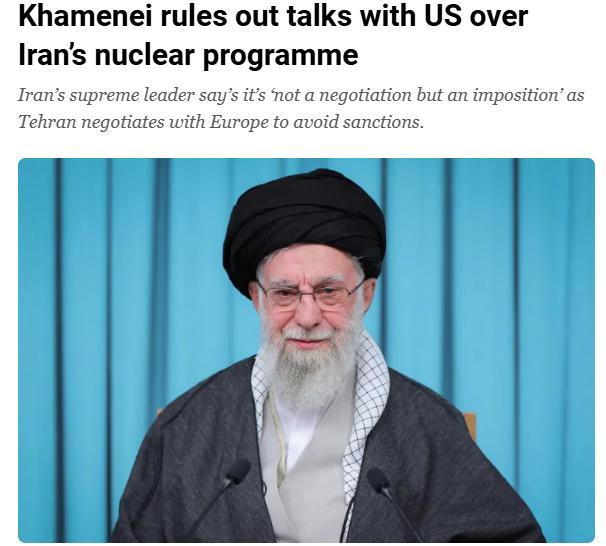 伊朗最高领袖:与美国谈判是“死胡同”中新网9月24日电 综合卡塔尔半岛新闻网和阿拉比亚新闻网报道,当地时间23日,伊朗最高领袖哈梅内伊表示,与美国进行谈判不符合伊朗的利益,最终只会走入“死胡同”。