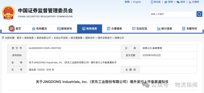 京东工业港股IPO获中国证监会备案9月22日,中国证监会国际合作司发布关于JINGDONG Industrials, Inc.(京东工业股份有限公司)境外发行上市备案通知书。