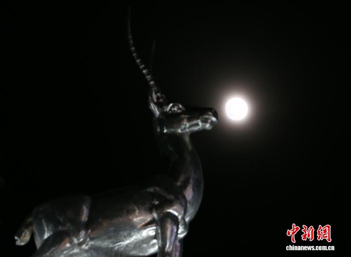青海格尔木:“超级月亮”现身天宇11月5日晚,“超级月亮”现身青海格尔木夜空。图为在青海省海西蒙古族藏族自治州格尔木市城区拍摄的“超级月亮”。张忠苹 摄