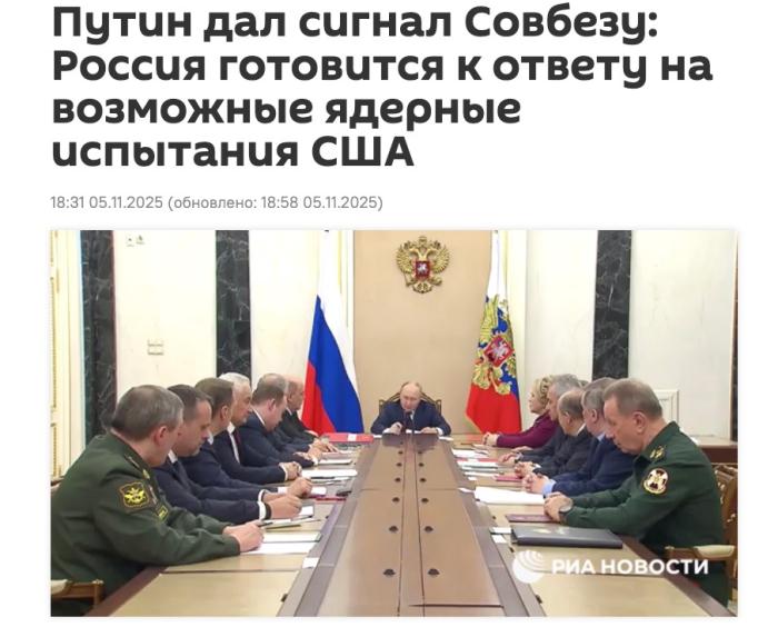 普京:若美国恢复核试验,俄将采取对等反制措施中新网11月6日电 据俄罗斯卫星通讯社报道,当地时间5日,俄罗斯总统普京表示,若美国或其他《全面禁止核试验条约》缔约国进行核试验,俄方必将采取对等反制措施。