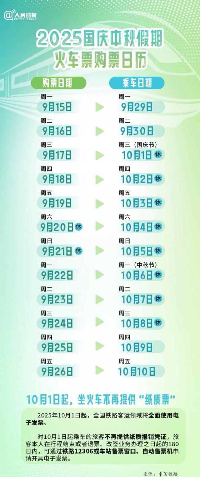 国庆中秋购票4个关键时间 把握抢票时机国庆中秋假期购票的关键时间如下:9月16日可以购买国庆前一天即9月30日的火车票。9月17日可以购买10月1日国庆节当天的火车票。9月22日可以购买10月6日中秋节当天的火车票。9月24日则可以购买假期最后一天即10月8日的火车票